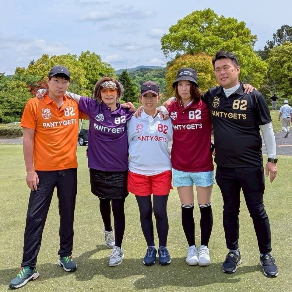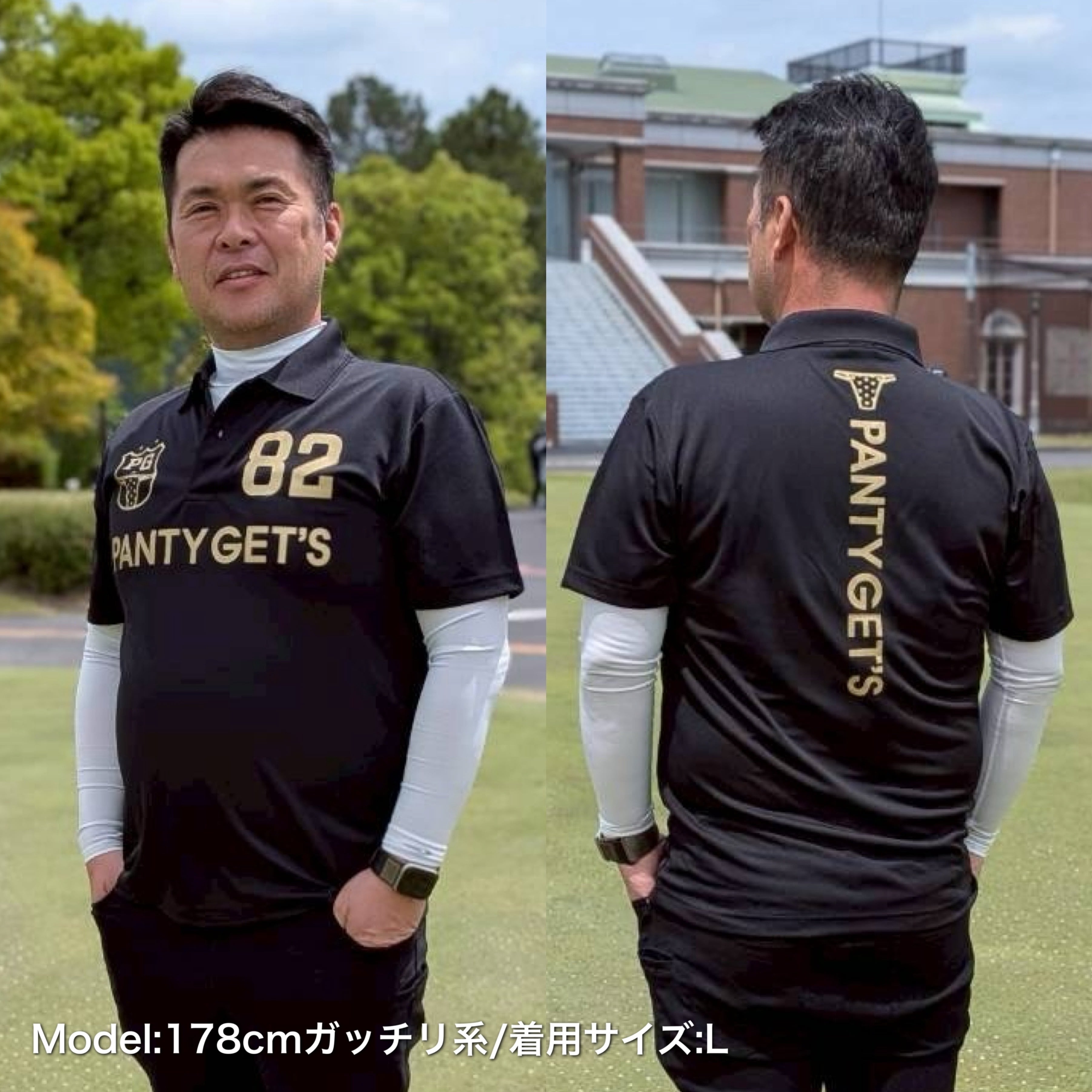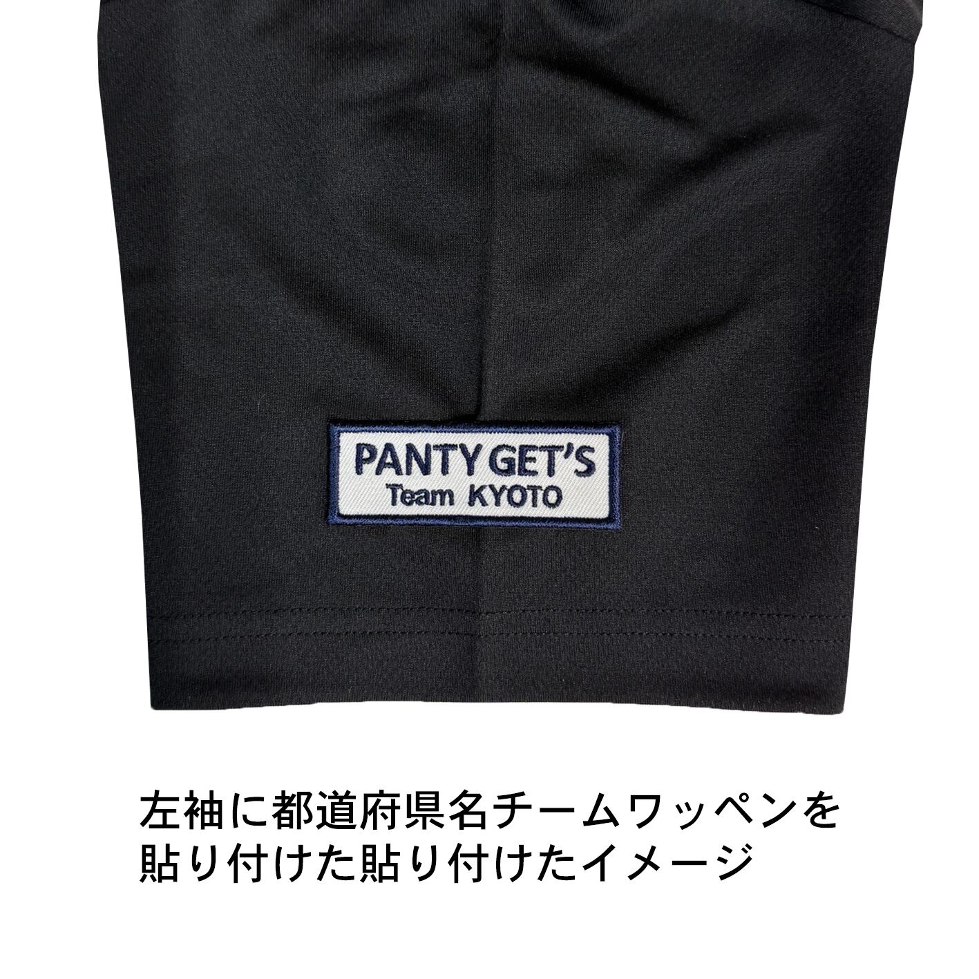 右胸にパンティー柄のエンブレム、左胸はパンツにちなんで82、胸部にはPANTY GET'Sの文字、背面はパンティーとPANTY GET'Sをプリントしました。