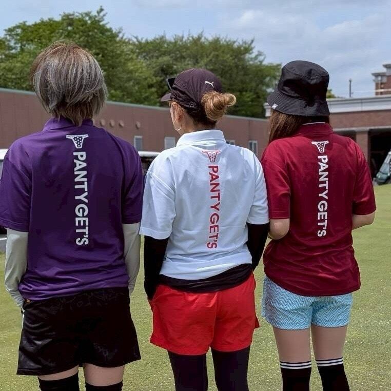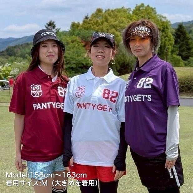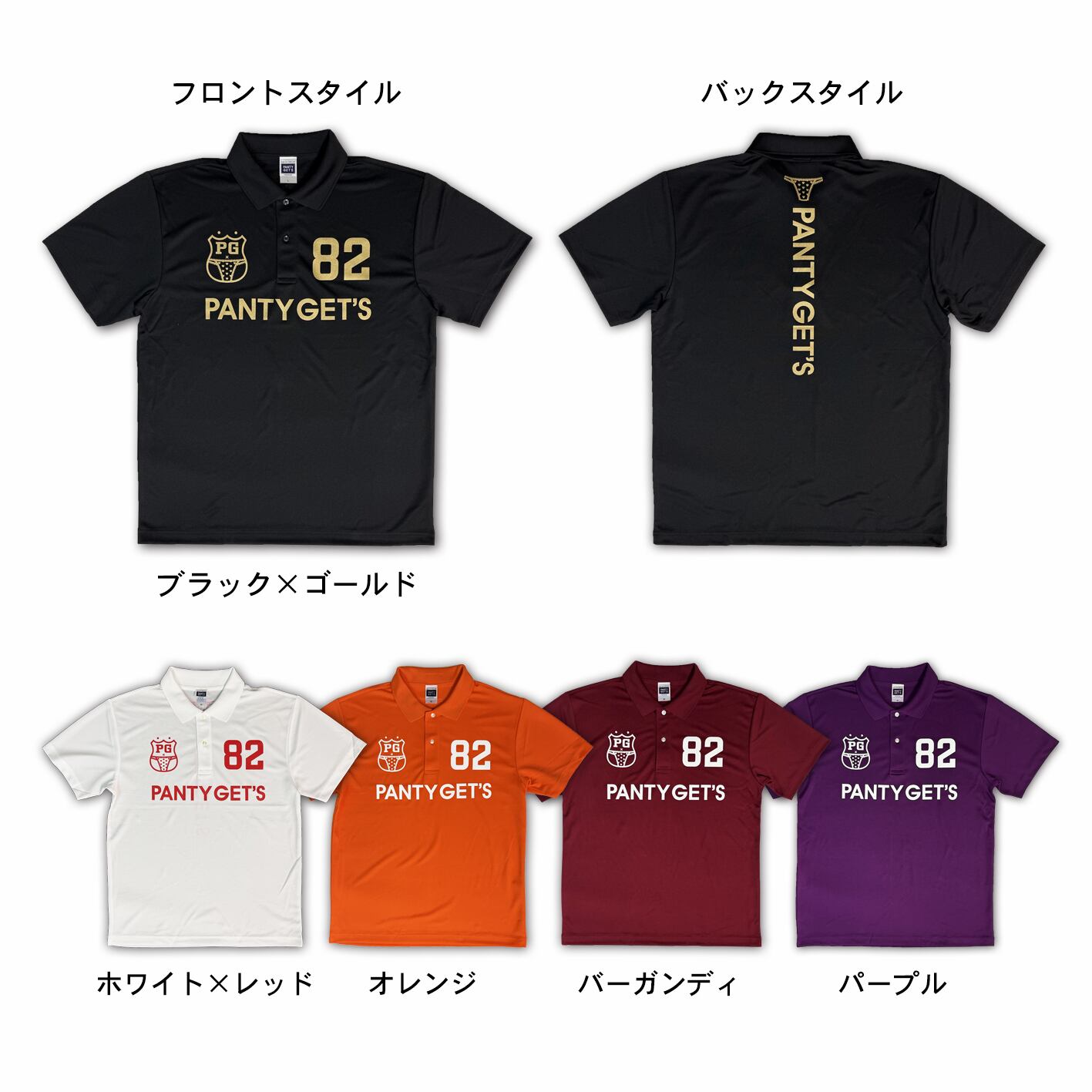 右胸にパンティー柄のエンブレム、左胸はパンツにちなんで82、胸部にはPANTY GET'Sの文字、背面はパンティーとPANTY GET'Sをプリントしました。