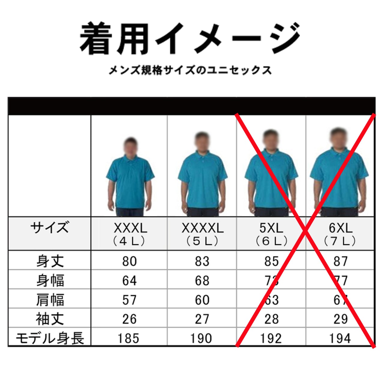 モデル着用画像はM~LサイズイメージとなりますのでBIGサイズポロシャツはプリントのバランスが多少異なります。
