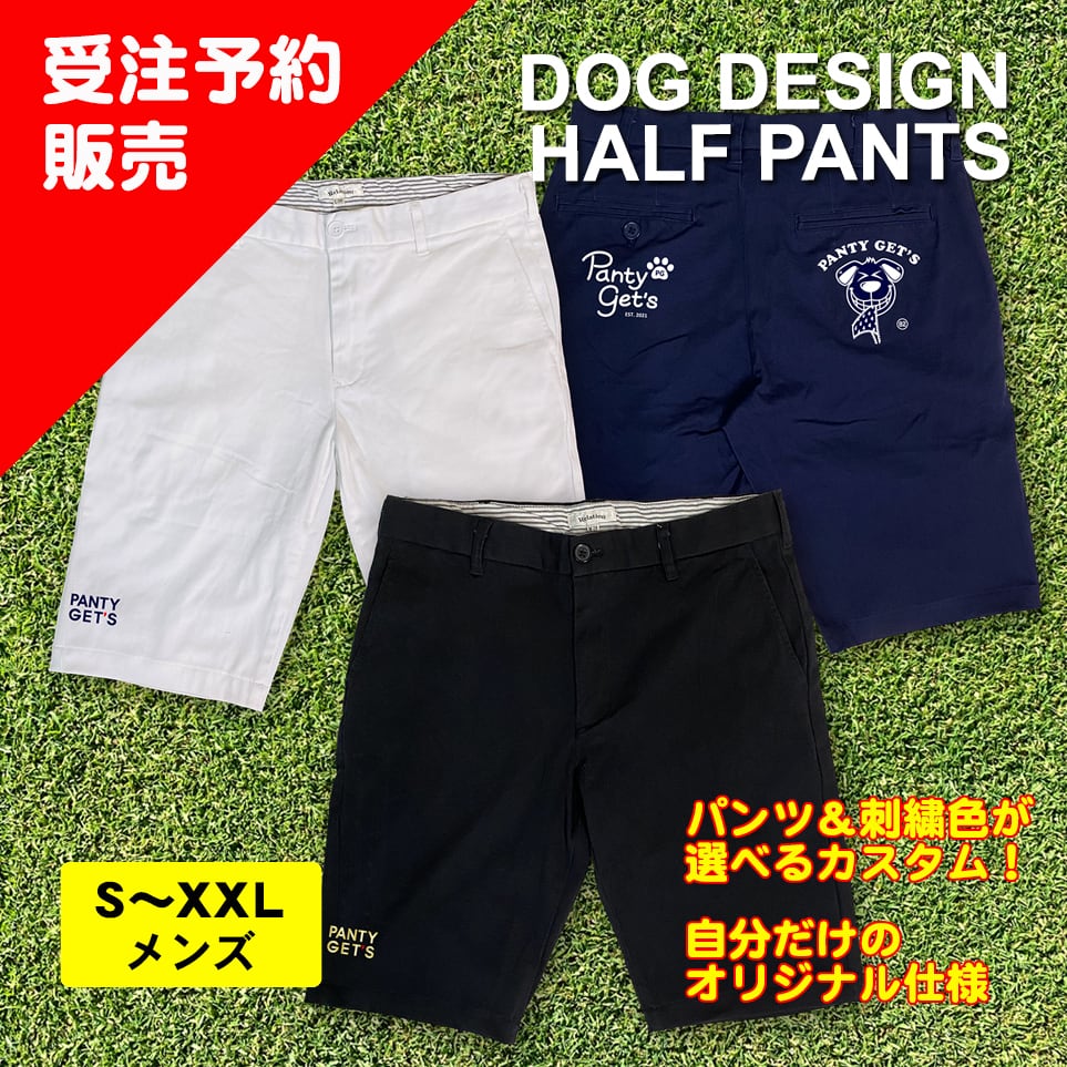 【刺繍カラーをカスタマイズ】ゴルフ チノ メンズ わんこ柄 ハーフパンツ(受注生産ご予約商品)